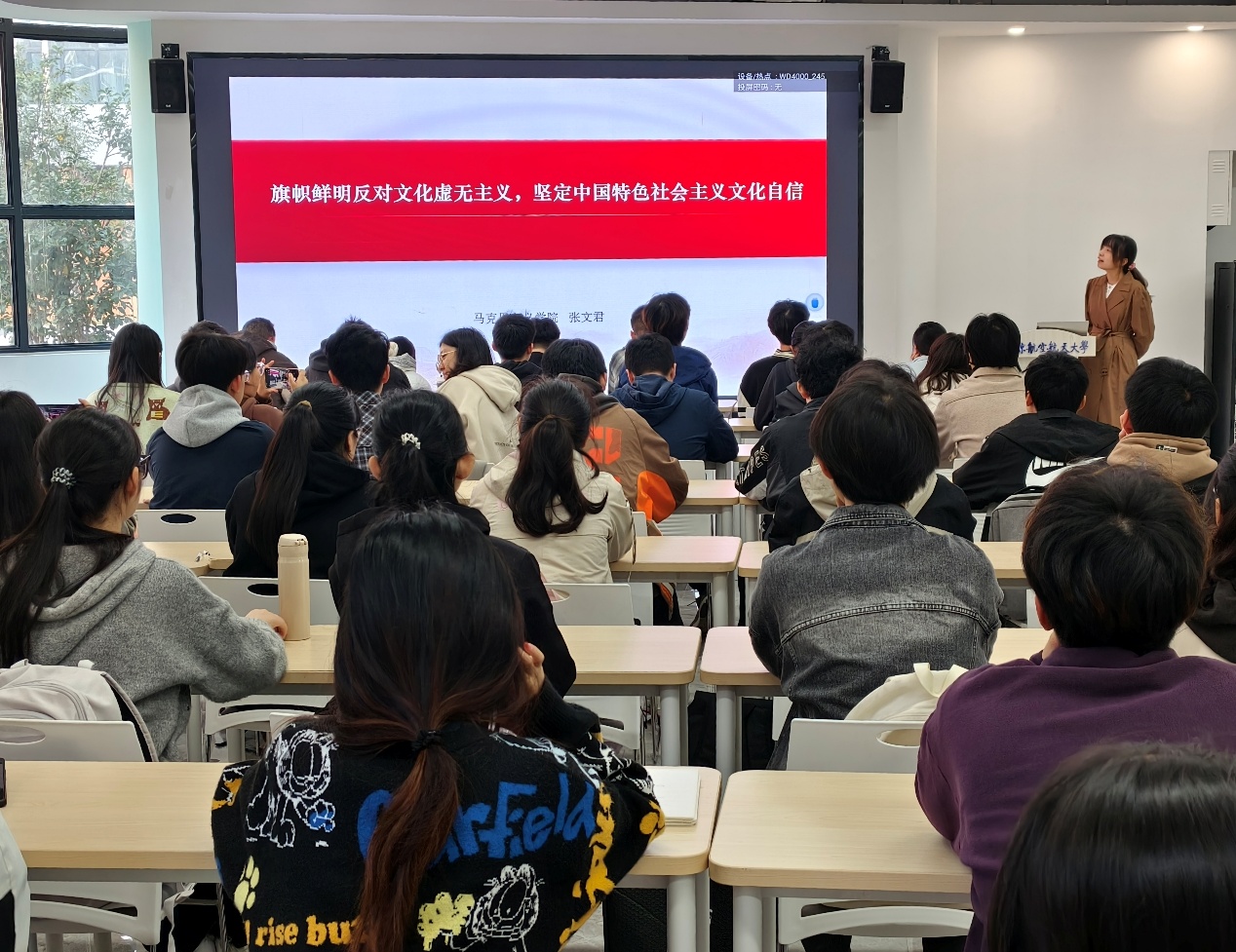 偷拍视频 思政专员、马克思主义学院张文君老师讲授《旗帜鲜明反对文化虚无主义,坚定中国特色社会主义文化自信》专题党课。她从“文化虚无主义”的叙事方法出发,结合现实生活中的生动案例,深入剖析了文化虚无主义的现实表现与深层危害,明确指出其错误本质与消极影响,引导同学们要增强防范意识与辨别能力,自觉抵制文化虚无主义,牢固树立中国特色社会主义文化自信。