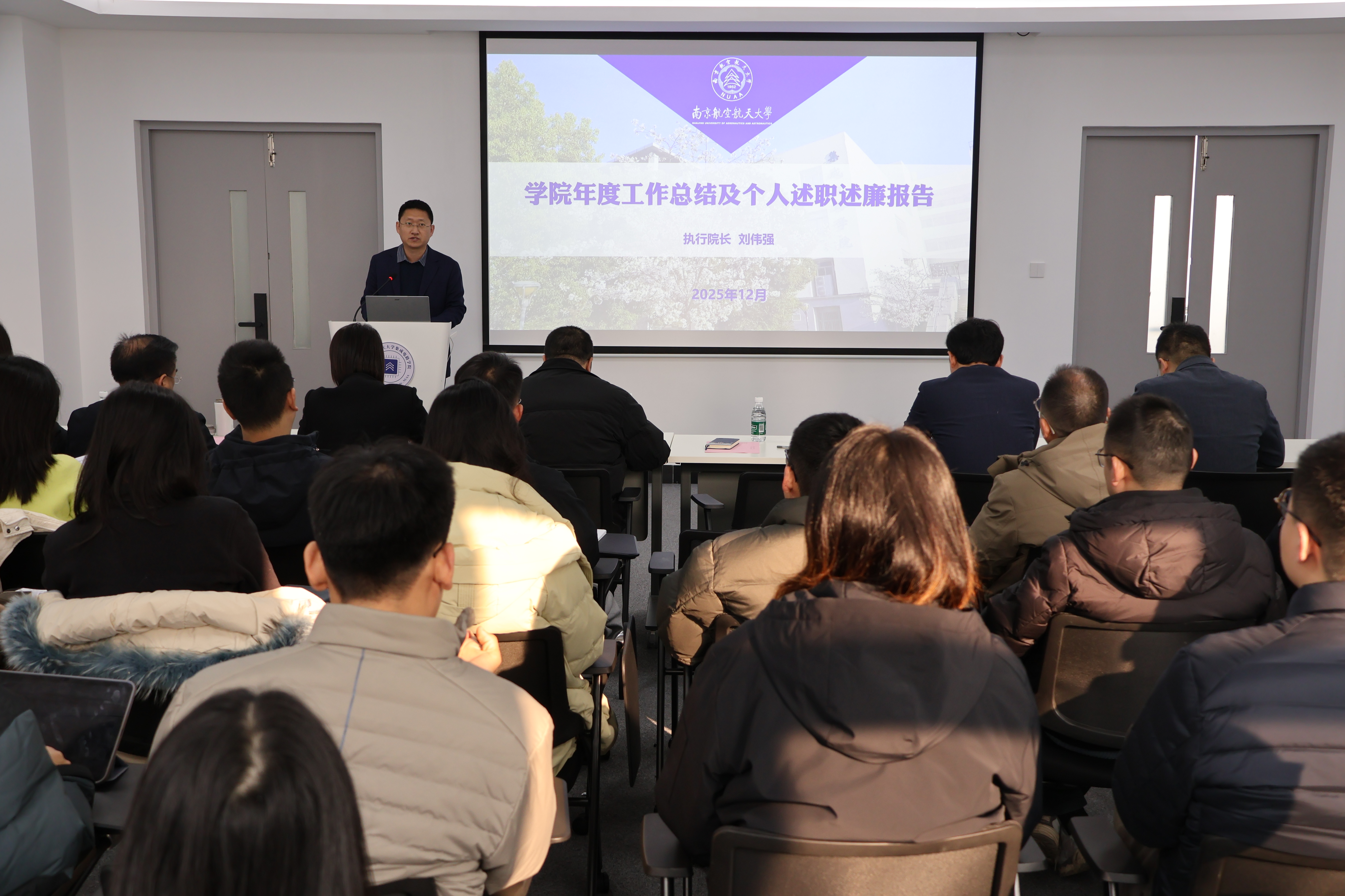 党委书记黄彬作学院年度党建工作汇报及个人述职述廉报告。他指出,学院党委始终坚持以高质量党建引领高质量发展,在完善治理体系、推动文化建设、汇聚人才队伍和拓展办学资源等方面发挥了重要作用,营造了团结奋进、和谐友爱的学院氛围。他强调,要坚持把党建工作与教学科研、人才培养等深度融合,为学院持续健康发展注入强劲动能。