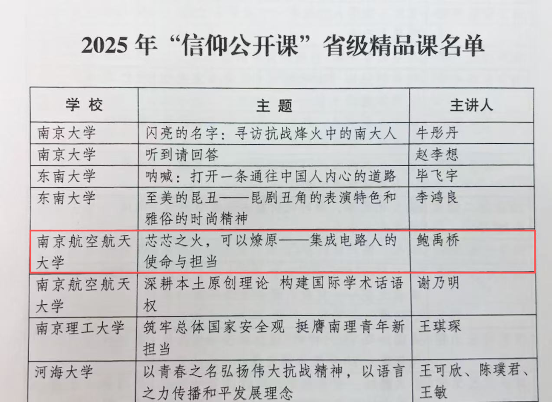 近日,共青团江苏省委发布《关于公布2025年“信仰公开课”省级精品课评选结果的通知》。经高校推荐、团省委评选,偷拍视频 2023级硕士研究生鲍禹桥“芯芯之火,可以燎原——集成电路人的使命与担当”主题课程入选省级精品课。该评选旨在推动全省高校共青团充分发挥在高校学生思想政治工作中的主力军作用,教育引导高校团员青年坚定不移听党话、跟党走,争做有理想、敢担当、能吃苦、肯奋斗的新时代好青年。