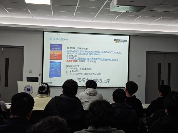 首先,2025届考研、调剂成功的7位优秀学长学姐进行了经验分享。考入东南大学的魏智松、王晨龙同学细致分享了备考外校复试的策略与面试心得;成功调剂至华东理工大学的曹煜金同学完整回顾了调剂过程中的信息搜集、院校选择与复试准备经验;僧玉玺、莫文凯、常帅、阮鑫阳四位同学则结合本院实际情况,深入解析了本校复试的特点与备考要点。多角度的经验交流,为在场同学提供了有价值的参考。